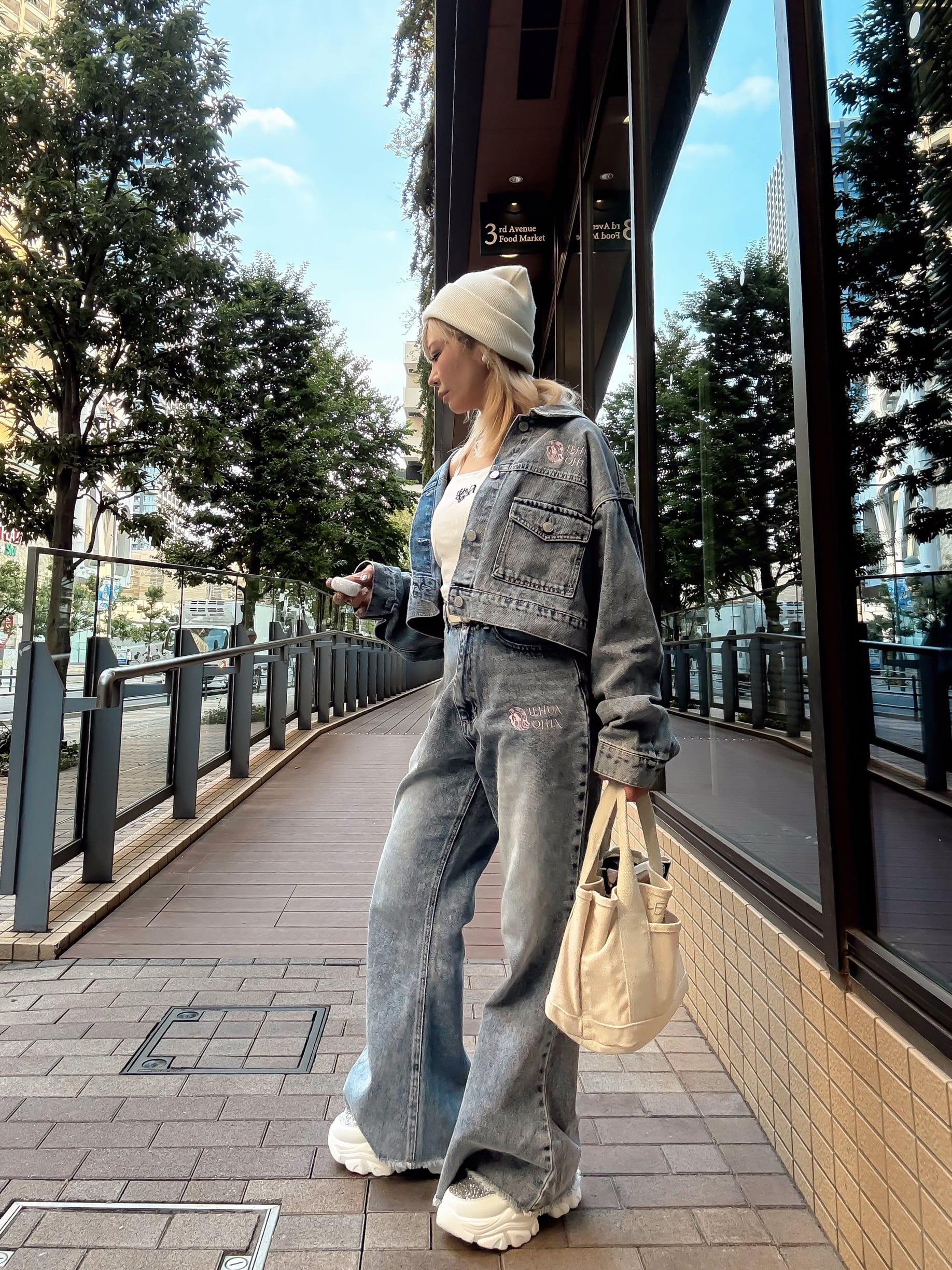 【LEHUAOHIAウォッシュ加工クロップド丈セットアップ】
