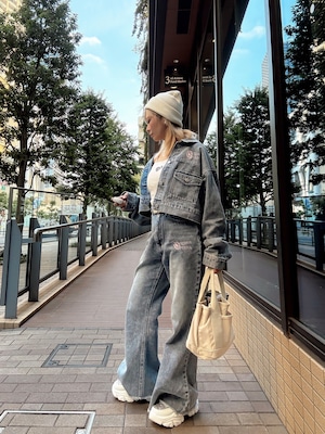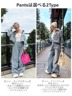 【LEHUAOHIAデニムクロップド丈セットアップ】